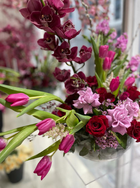 Velvet Harmony Fish Bowl Arrangement